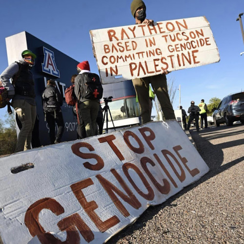 Raytheon Missiles in Tucson, Arizona, is a top war profiteer, and the University of Arizona in Tucson partners with Raytheon to develop weapons. Raytheon has a factory on the Navajo Nation's commercial farm, Navajo Agricultural Products Industry, near Shiprock, N.M.