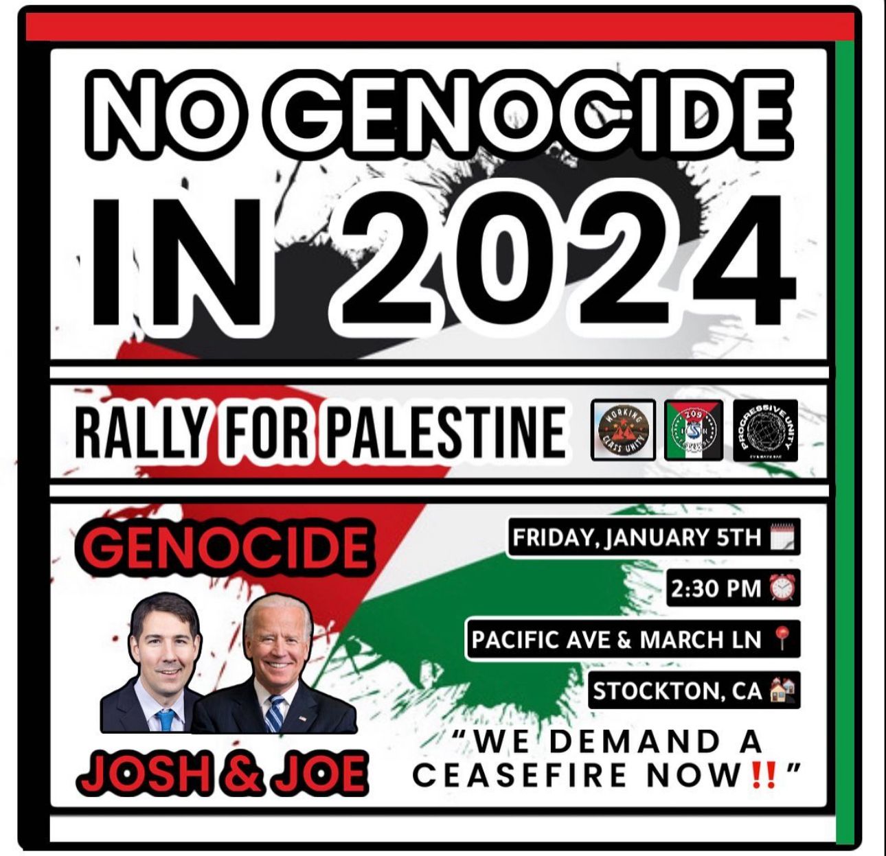 Please join us in Stockton for a Rally for Palestine: No Genocide in 2024!