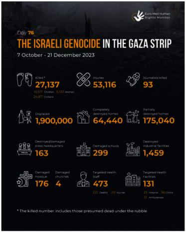 It outlines very clearly how Israel has demonstrated beyond a doubt and with visual documentation (and hubris) its very deliberate intention to commit genocide to eradicate the Palestinians and take over not only Gaza but also the West Bank. All of the elements that define genocide have been met.