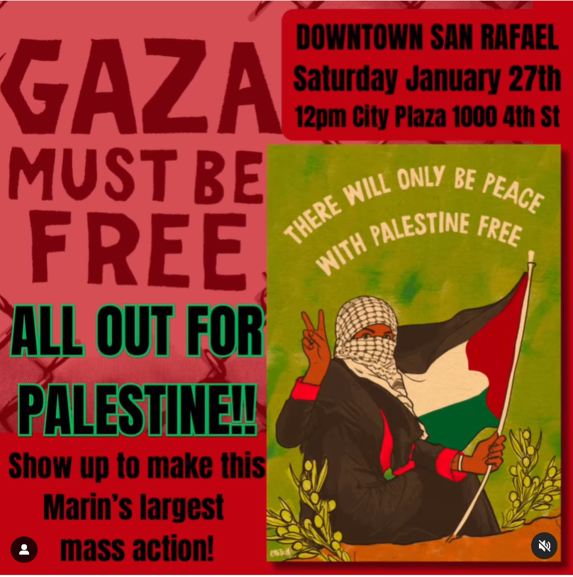 Join Marin for Palestine with the largest mass action in this county since the summer of 2020. There will be speakers including Norman Soloman, then a march that goes past Congressman's Jared Huffman's office, where we will be leaving bloodied children shoes/dolls to highlight the genocidal toll. (Feel free to bring your own to add to the pile!).