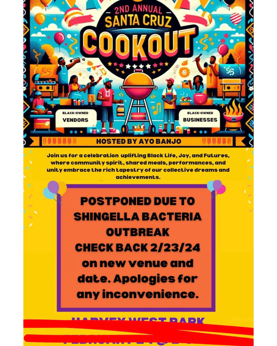 The Santa Cruz Cookout is a call to come together in support and joy, to recognize the beauty of Black culture, and to contribute to a future where everyone is empowered to thrive. Whether you’re reconnecting with old friends or making new ones, this day promises to be a memorable celebration of who we are and all that we can achieve together. Let’s Celebrate Black Life, Black Joy, and Black Futures - Together! For more information and to get involved, email ayosbanjo [at] gmail.com