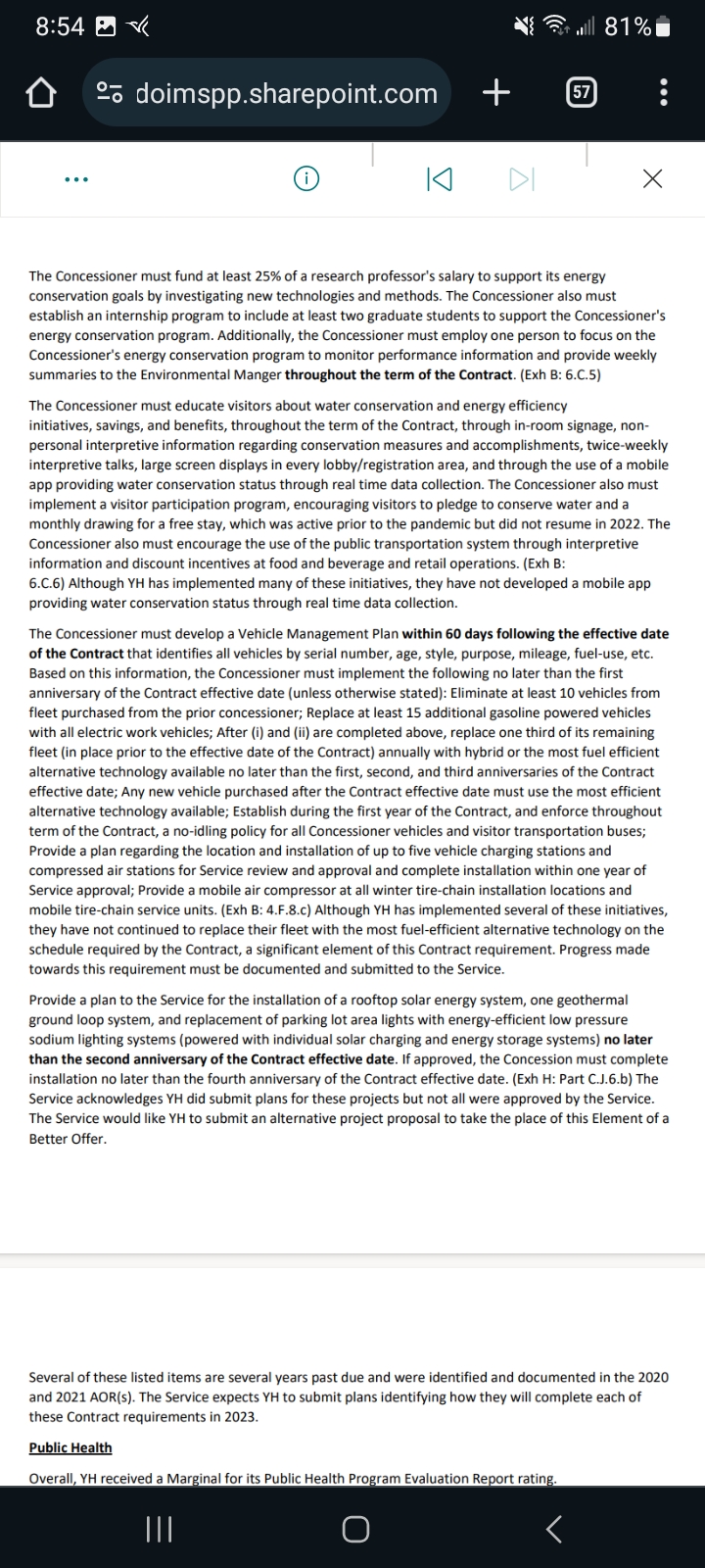NPS sent Aramark a formal letter regarding its outstanding unmet Contractual obligations. Which were also discussed in the 2021 AOR.