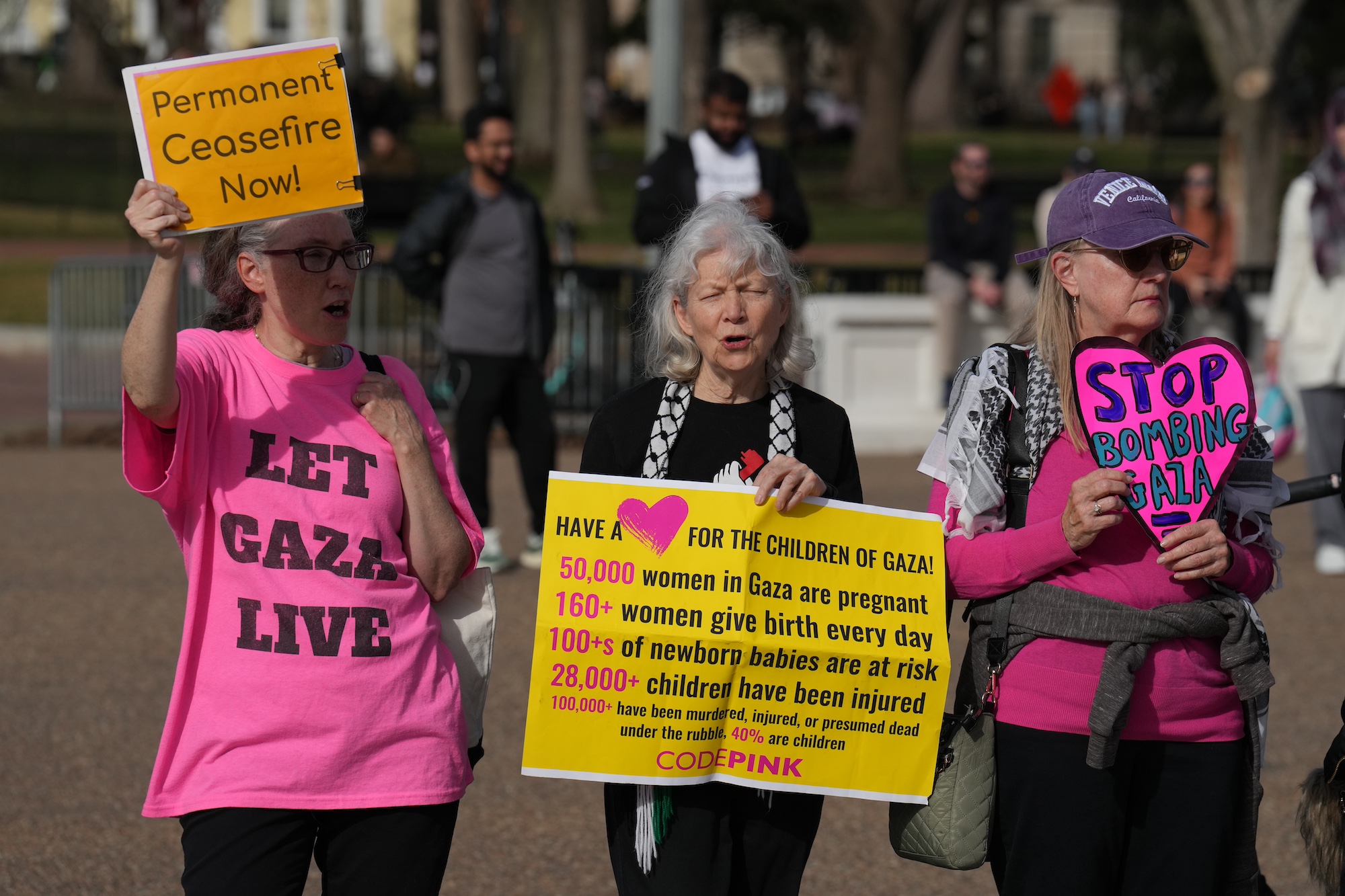 A Palestinian woman next spoke and questioned why no one in the White House thinks of the people of Gaza as human beings and implores the horrors of children and babies being killed daily during this genocide. She questioned why there is no international outcry.