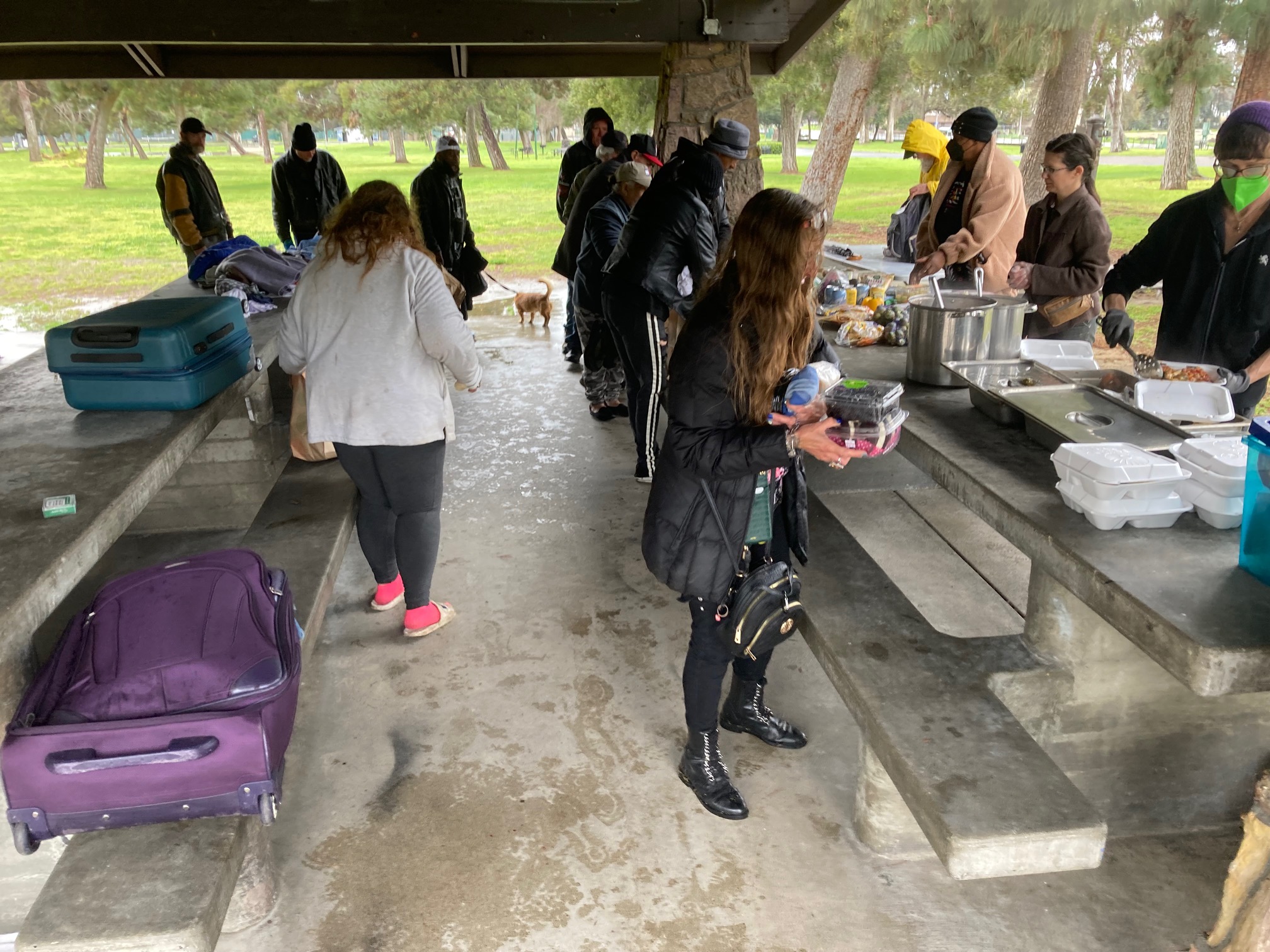Rainy days and Saturdays have rarely been an issue for the weekly Food Not Bombs meal serving at Roeding Park, here in Fresno California. Perhaps the beneficiaries of a long-term drought situation, even on rainy days those clouds tended to part when the time came to gather, serve meals and whatever aid and comfort could be provided to our friends living on the street or simply suffering from hunger in hard times. It always seemed like a minor miracle that the meal itself rarely needed shelter, as opposed to the many cold and wet homeless residents of that area over the last few decades.