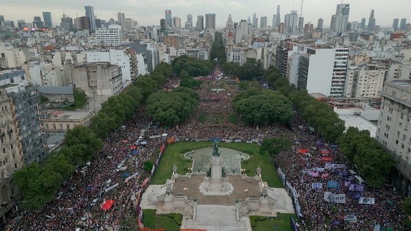 Acá estamos en esta plaza y en todo el país en alerta y movilizades.