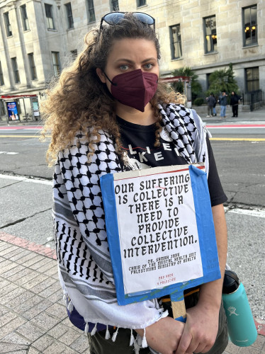 In San Francisco speakers protested the continue murder and genocide by Israel and the