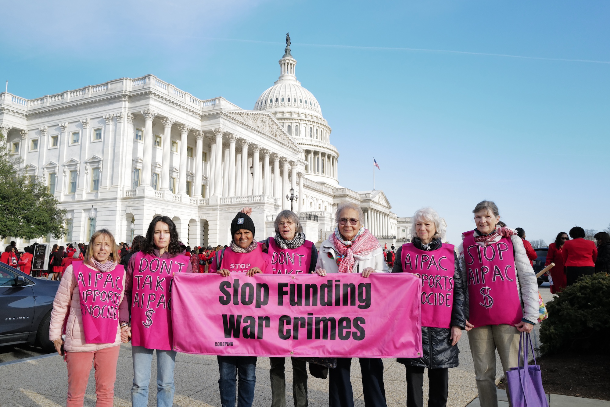 According to Code Pink, “Those efforts have paid off handsomely as Congress is honoring Biden’s request to continue to fund genocide. The United States House of Representatives has passed a Republican plan providing $14.5 billion in military aid for Israel. The package includes $4 billion to replenish Israel’s Iron Dome and David’s Sling missile defense systems and military equipment transferred from U.S. stocks.”