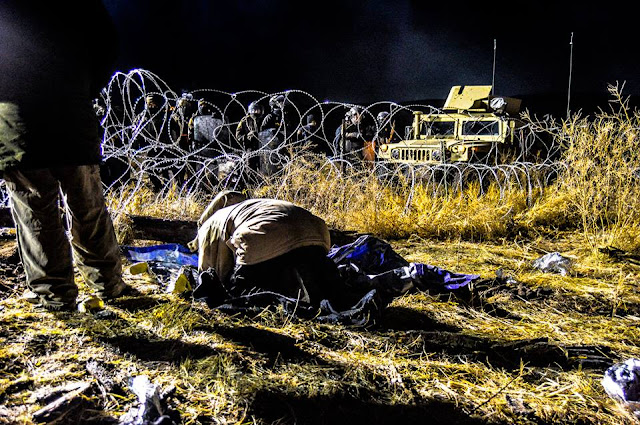 An FBI agent wandered around the camps at dawn dressed in REI outdoors clothes. The U.S. Border Patrol drone was overhead constantly. And all that doesn't include the TigerSwan surveillance.