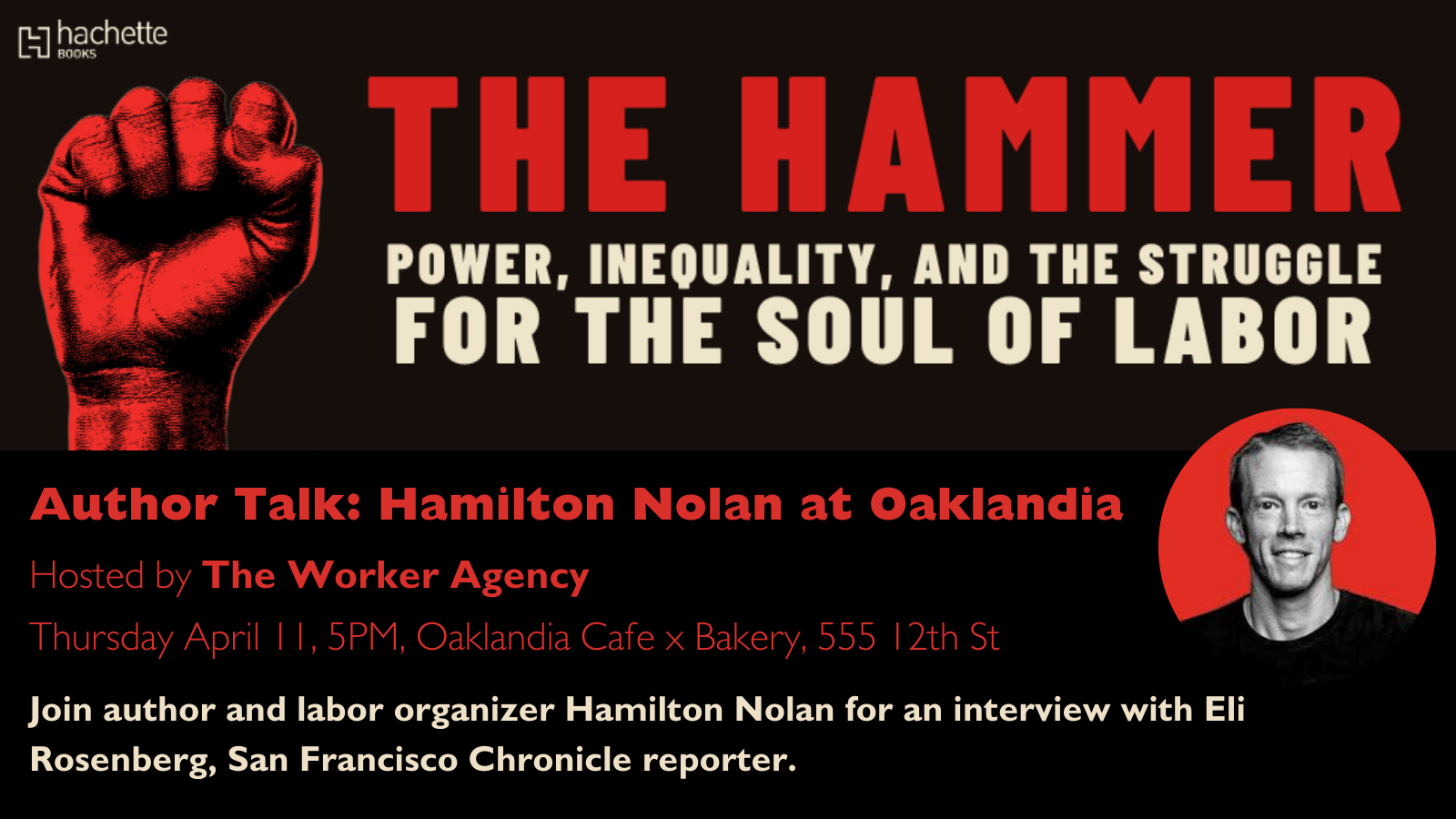 On Thursday April 11, The Worker Agency will host Hamilton Nolan, author of "The Hammer: Power, Inequality and the Struggle for the Soul of Labor," in conversation with veteran reporter Eli Rosenberg of the San Francisco Chronicle.
