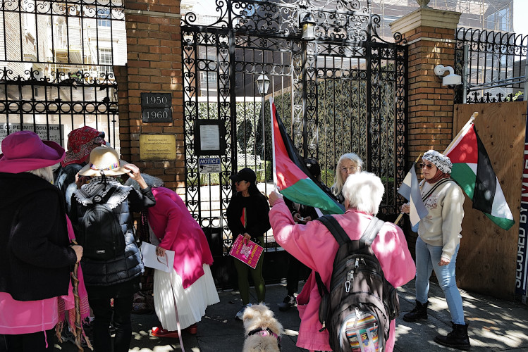 Members of Code Pink held a rally at the German Consulate in San Francisco calling upon Germany to desist in arming the Israeli military and to reopen humanitarian aid to Gaza.