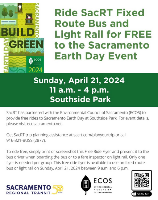 Sacramento Earth Day is the largest Earth Day celebration in the Sacramento region. Join us on April 21, 2024 at Southside Park in Sacramento, for a free, family-friendly event, with opportunities to learn and network about sustainability. We will have over 100 exhibitors and vendors, and hundreds of attendees.
