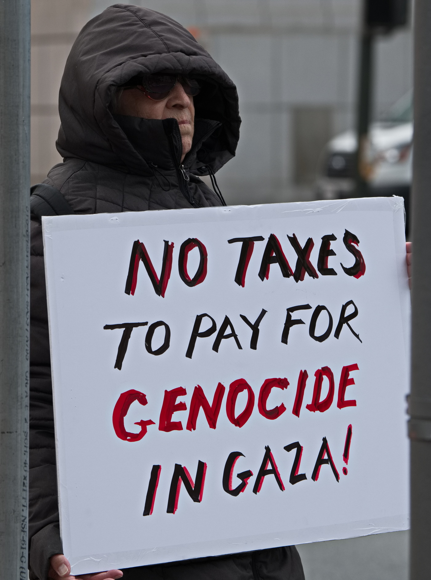 Activists demands were simple. They refused to have their tax dollars pay for the death and destruction being inflicted on Gaza. Several planned to withhold their tax payments.