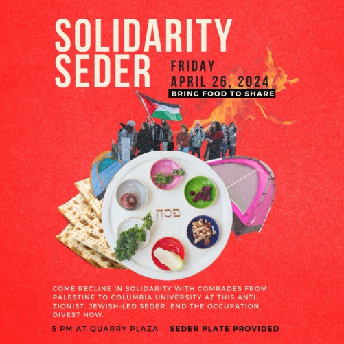 Comrades, across the country students and workers are standing up for Palestine and bravely facing censorship and repression at all levels. From Columbia to Berkeley, students have been occupying campuses, and in New York City an incredible People's Seder was held just blocks from Chuck Schumer's home. Here in Santa Cruz, a group of anti-Zionist Jewish organizers are putting on a public Solidarity Seder and the whole community is invited!