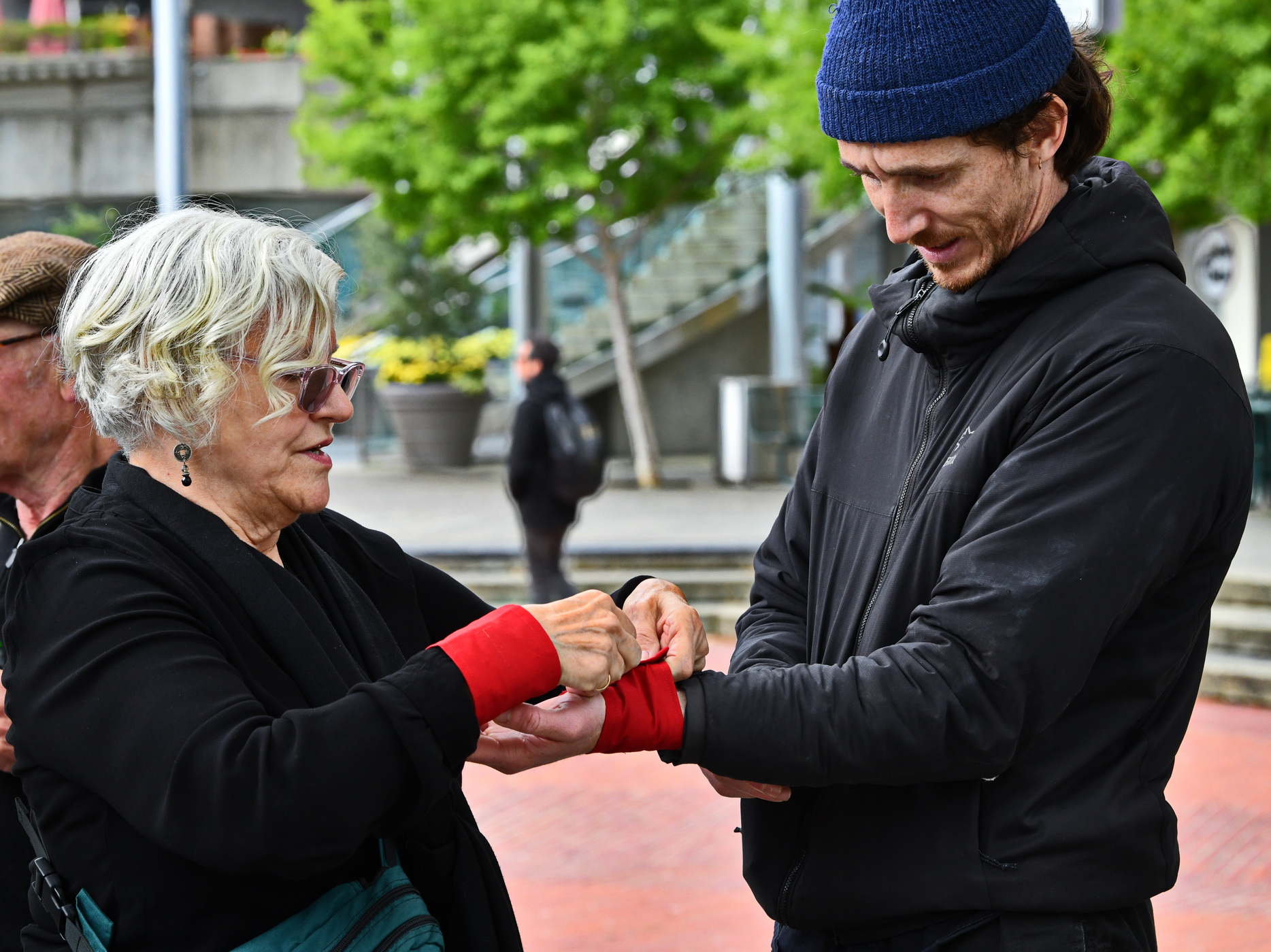 Outside, passersby were given flyers encouraging them to write to Wells Fargo’s Chief Sustainability Officer to send the message to top executives at Wells Fargo to take immediate action on climate justice.