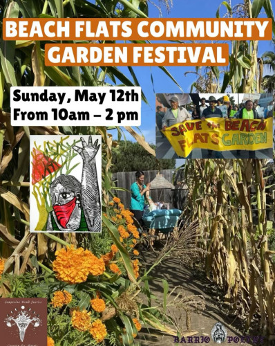 🌿🌹Come celebrate, center, and uplift the Brown Immigrant Community of Santa Cruz, Amah Mutsun Territory. The Beach Flats Garden, El Jardín De La Playa, is located on the corner of Third, Raymond, and Uden Streets and it is owned by the Santa Cruz Seaside Company, the largest tax revenue for the city of Santa Cruz. El jardín is the heart & soul of our local brown community. However, after the loss of 40% of the jardín in 2016 when the Seaside tried relocate the garden to increase commercial use, the community & garden haven’t had proper care and attention by city officials and the garden and even community vibrancy have deteriorated significantly. The jardín used to be and will continue to be a space for brown Indigenous immigrant folx to pant their ancestral foods autonomously and bring community together for traditional celebrations.