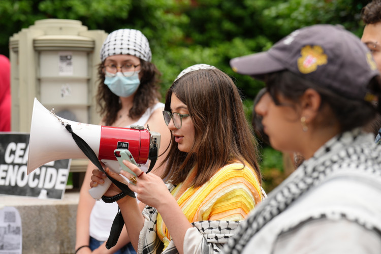 Student protest leaders at George Washington University (GW) held an afternoon news conference today in the aftermath of an email letter sent out yesterday to the GW community from President Ellen M. Granberg regarding the ongoing campus encampment for Gaza protest.