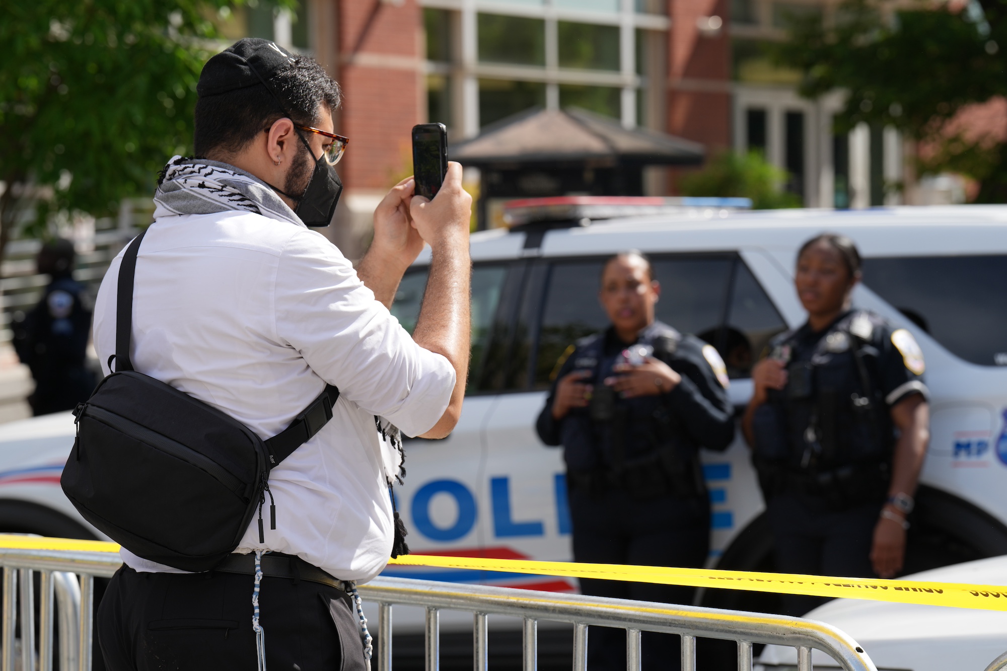 Chief Smith stated that MPDC had seen “an escalation of hostilities” at the protest encampment that started last Thursday when a campus police officer “was pushed by a protester and an item was grabbed out of the police officer’s hand. On Monday, MPDC learned of more indicators that the protest was becoming more volatile and less stable…including that counter demonstrators were in the encampment” and the collecting by protesters of what she described as “items that could potentially be used as offensive and defensive weapons.”