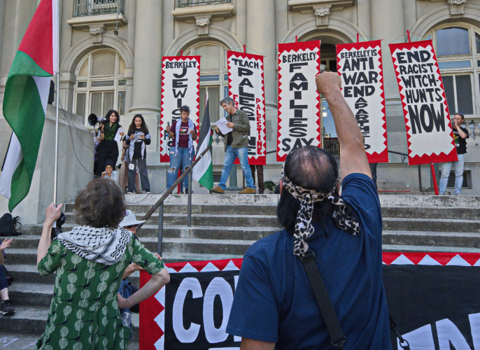 Israel weaponizes Jewish safety to fund war & to silence anti-war protests For decades, the Israeli state has justified its violent US -funded clampdown of Palestinian protests in Israel, West Bank, and Gaza, under the banner of Jewish safety. Now some Berkeley parents backed by pro-Israel interest groups are trying to bring the same level of control Israel exerts in education and protest there to American K-12 education and higher learning, under the guise of Jewish safety. But our students, including our Jewish students, aren’t having it. They want to learn about the occupation, their government’s complicity in it, and they want to exercise their constitutional right to protest.