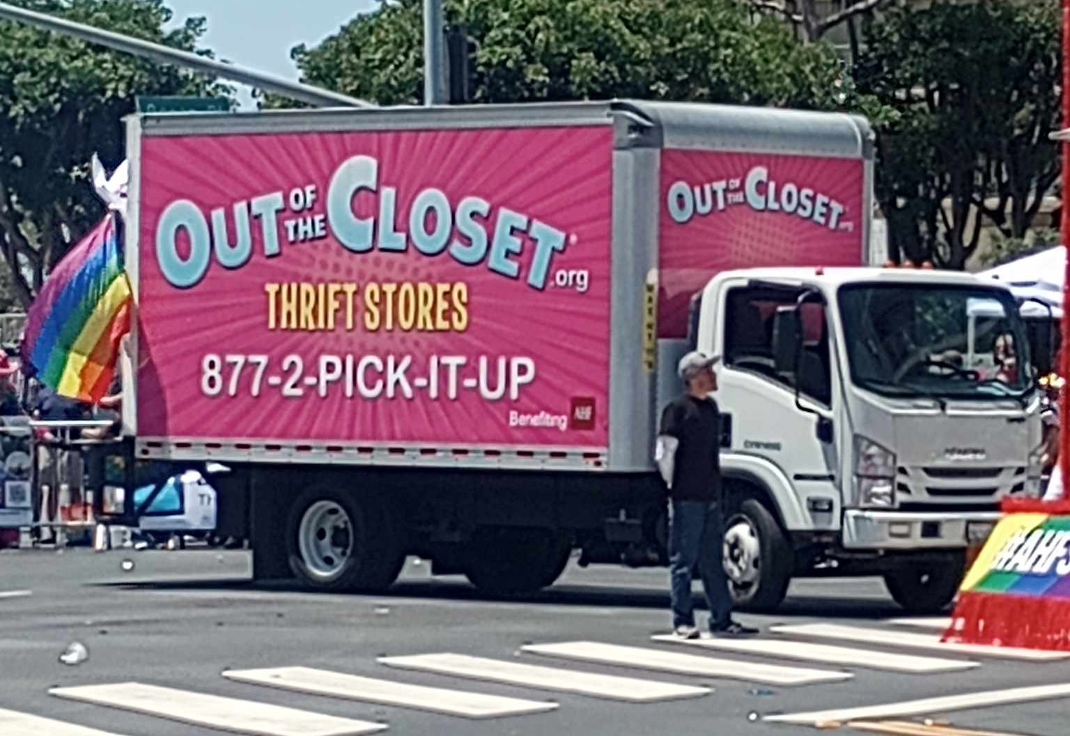 May 19, 2024, Long Beach, CA: Amid the party atmosphere was, of course, serious subjects like AIDS prevention/treatment, parents supporting their LGBTQ offspring, Planned Parenthood, and sobriety. There was also sponsorship by local businesses such as Hamburger Mary's as well as corporations including Disneyland, Walmart, Boeing, Gelson's, and major banks. But attention was also drawn to Israel's atrocities in Palestine (apparently by unaffiliated activists).