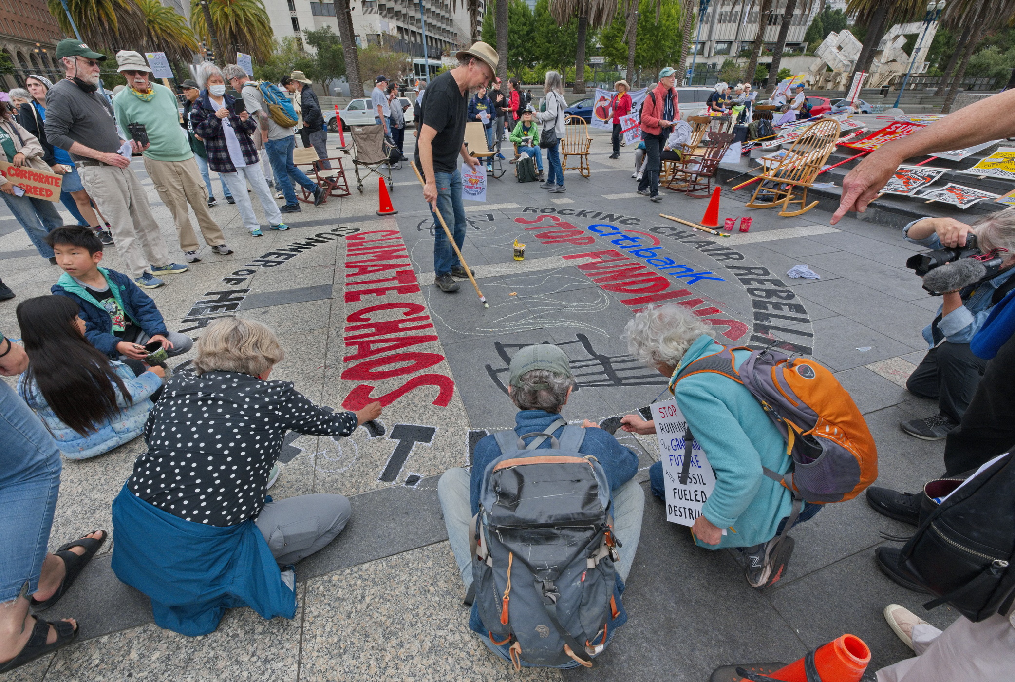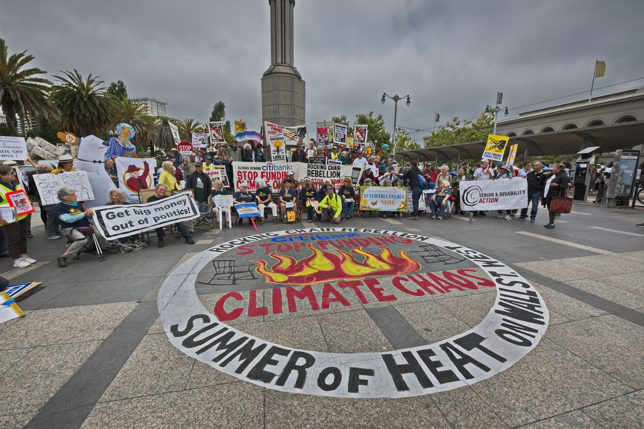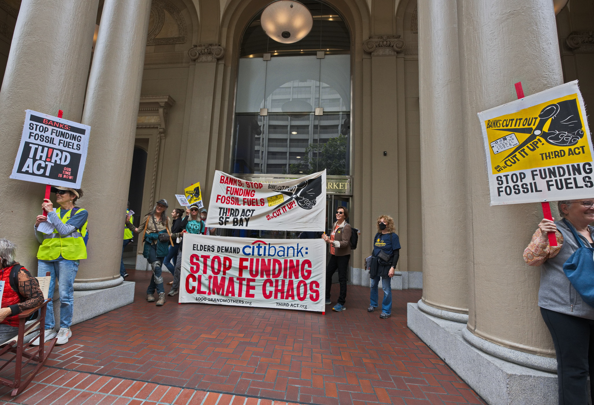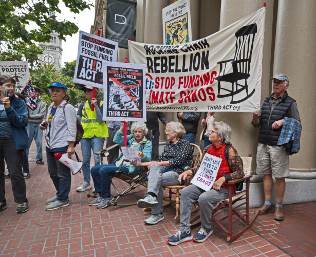 Elders bring their rocking chairs for sit-in protest at Citibank, the largest fossil fuel investor