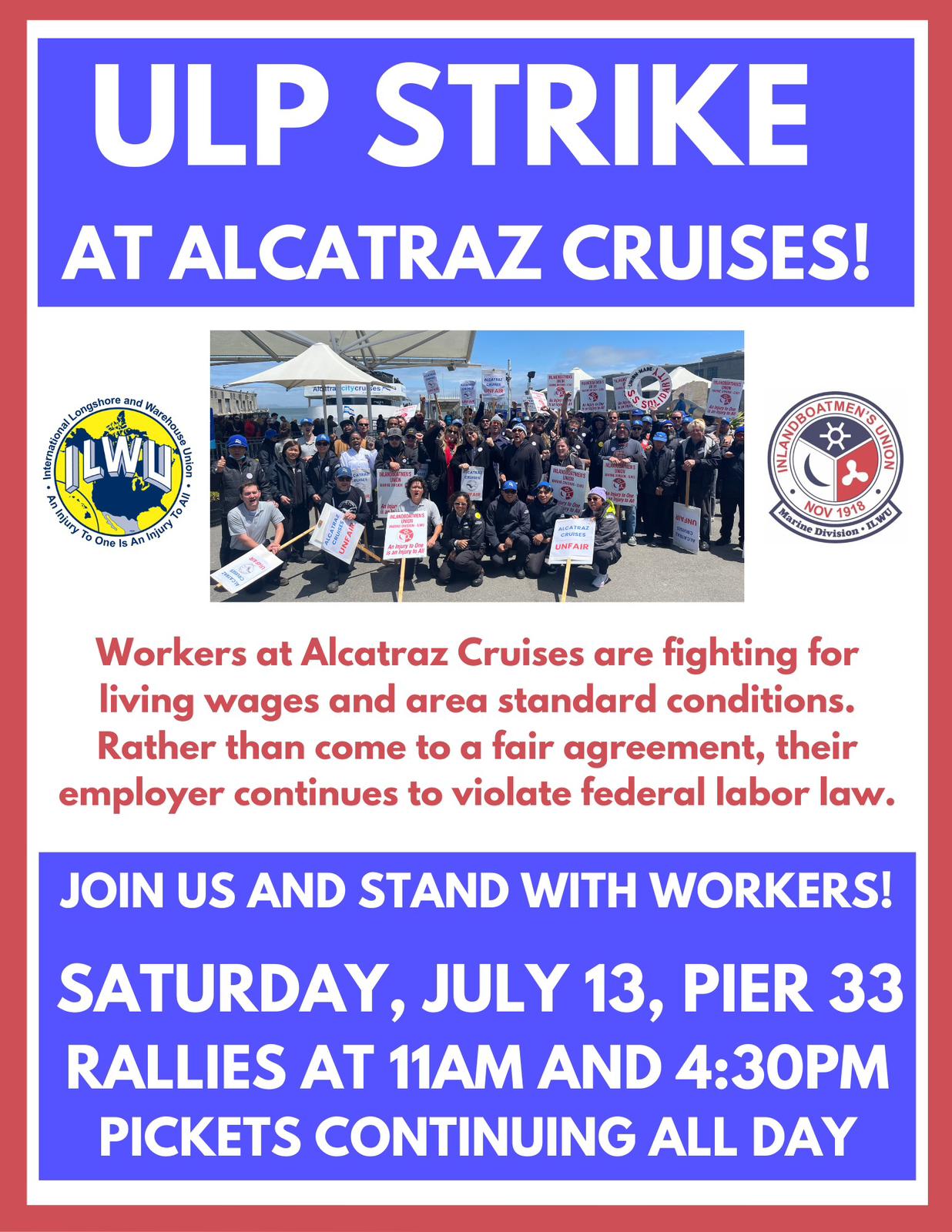 IBU ILWU Alcatraz Cruise Workers One-Day ULP Strike-Fighting for Respect & Prevailing Wages