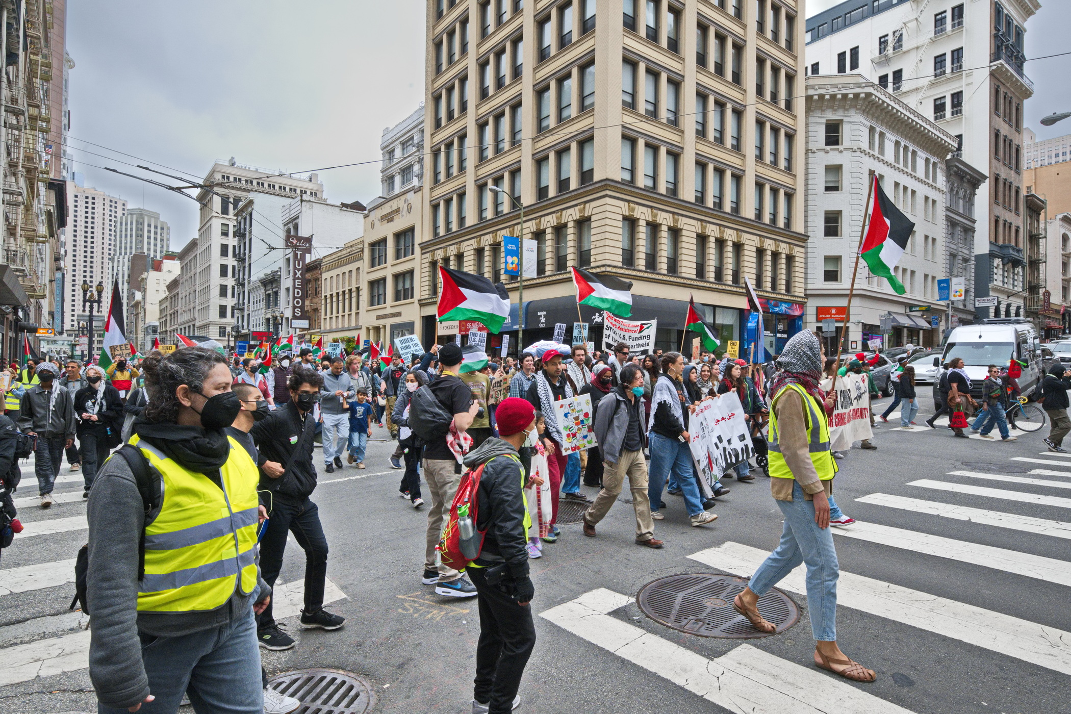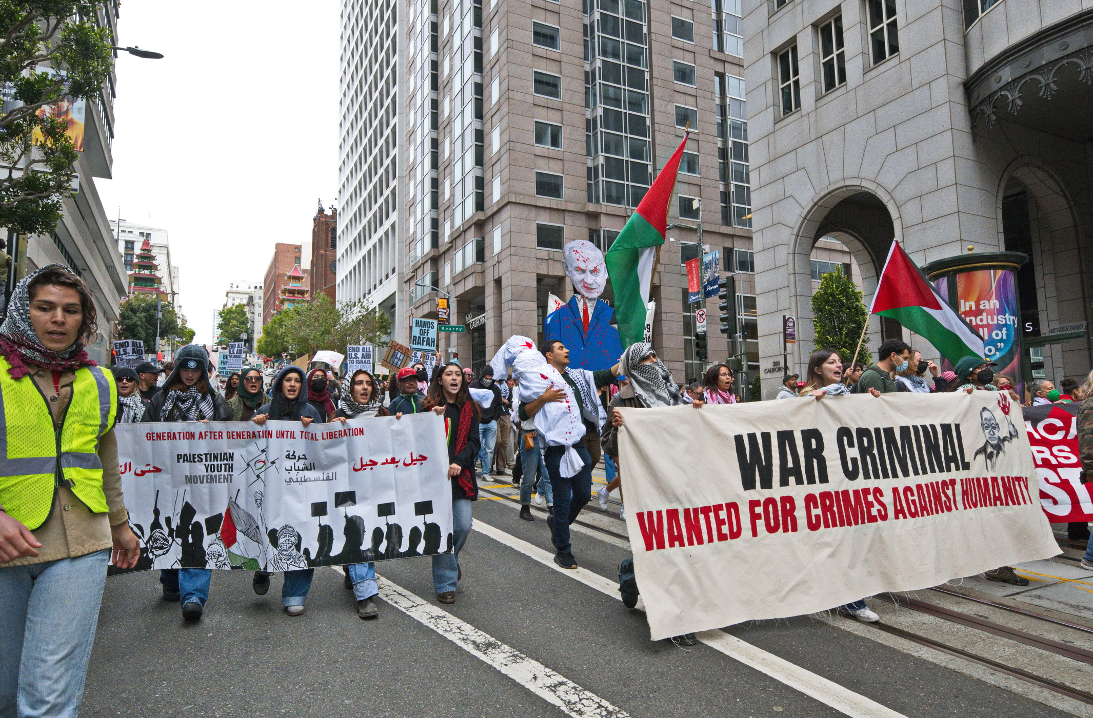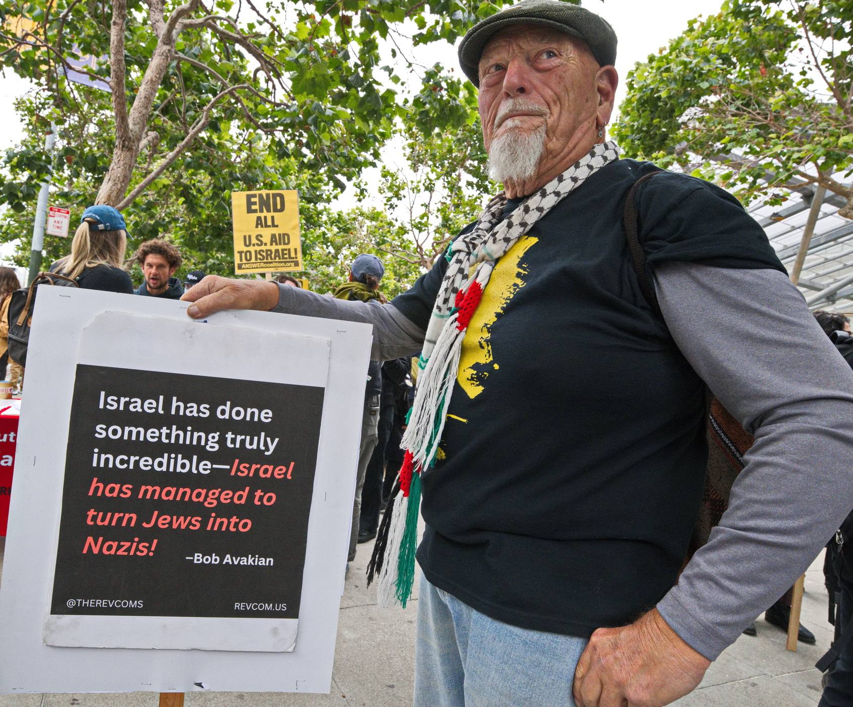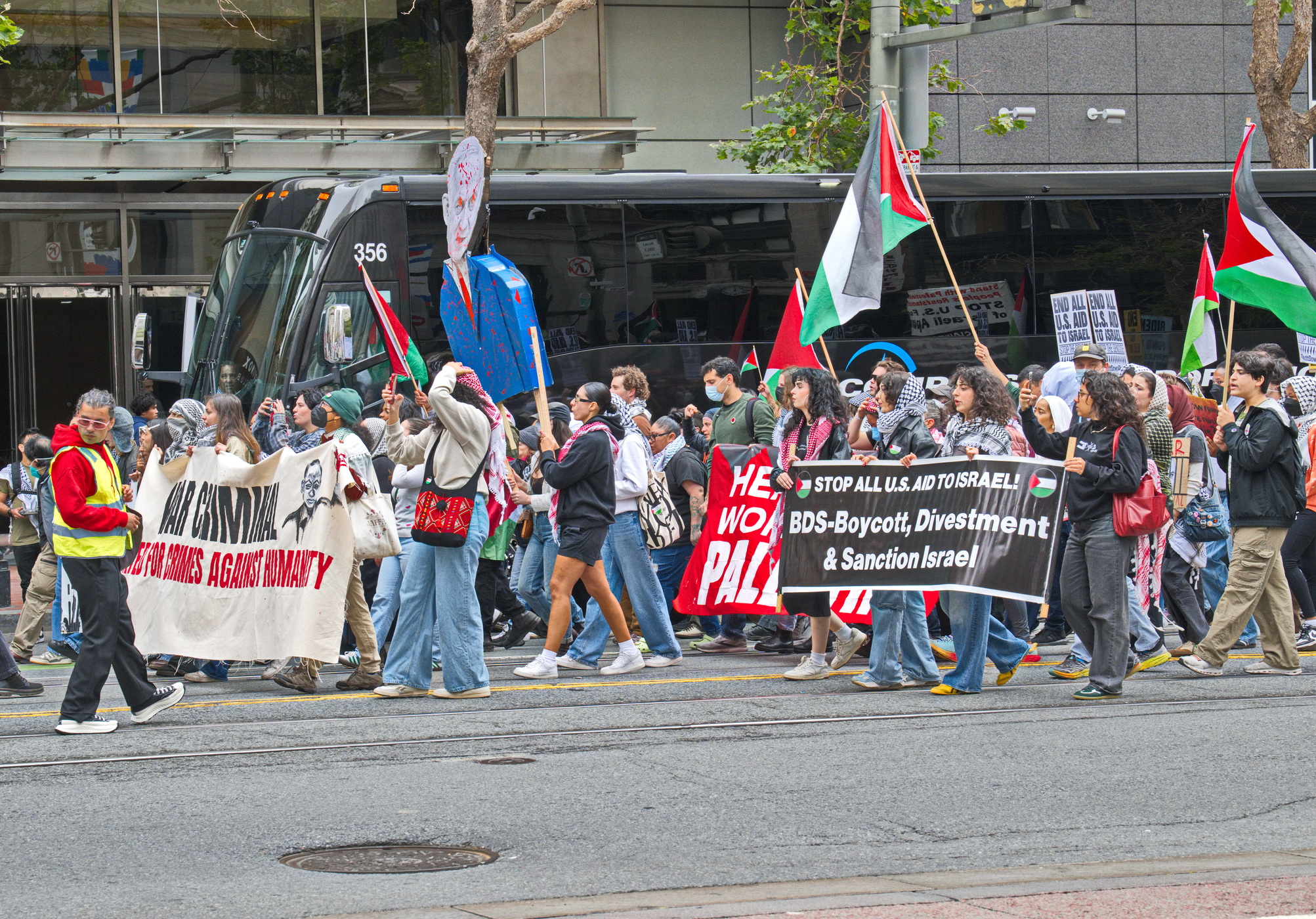 Many young activists were from the Palestinian Youth Movement. Participants and supporters included the Arab Resource and Organizing Center (AROC), the International Anti-Zionist Network (IJAN), Jewish Voice for Peace Bay Area (JVP) and the ever present Code Pink.
