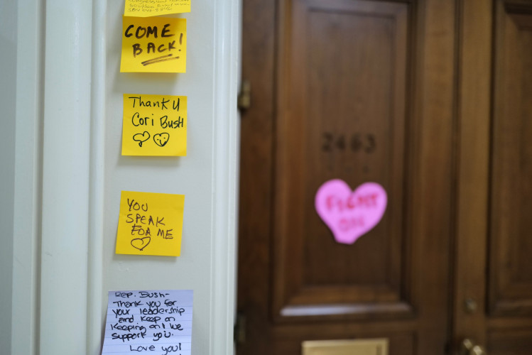 At the conclusion of the teach-in, the attendees made their way to the office of Cori Bush (D-MO) who was the first member of Congress to call for a ceasefire between Israel and Hamas shortly after October 7 Hamas invasion who is now being punished for being critical of Israel, a lesson that will intimidate many of her colleagues who will remain silent on the issue fearful of losing their positions.