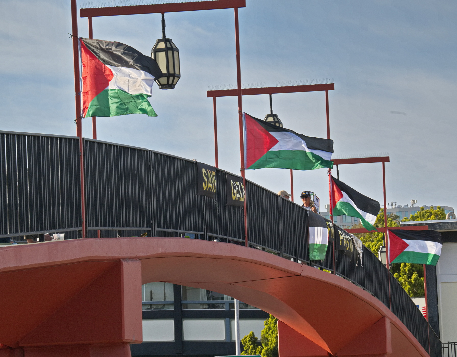 Banners Dropped on Pedestrian Bridge Over Geary Boulevard