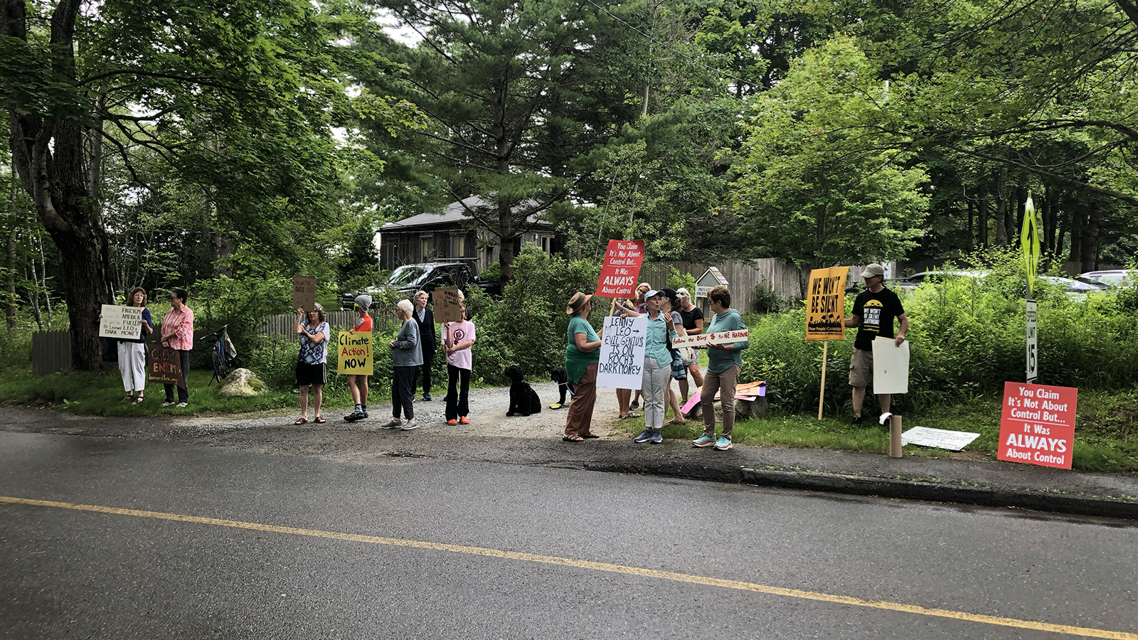 Some artwork from a Leonard Leo protester in Mount Desert, Maine