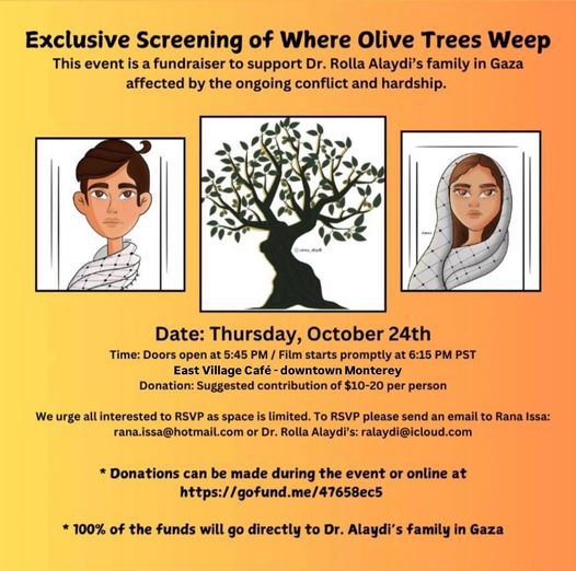 Join us for an exclusive screening of Where Olive Trees Weep, a documentary that explores Palestinian loss, trauma and the fight for justice over decades of life under Israeli occupation.