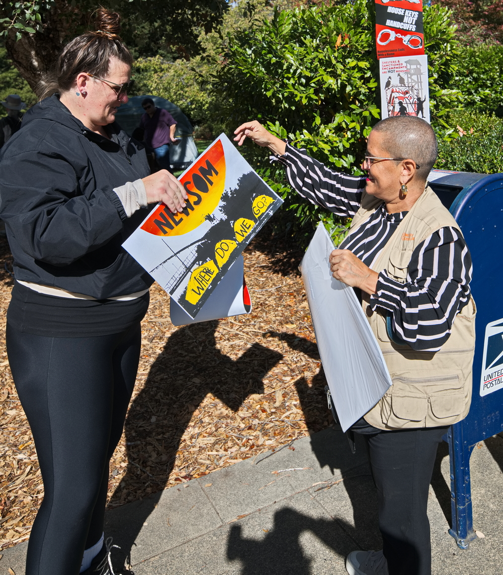 We demand new laws that protect the unhoused. Andrea Henson, civil rights attorney at the nonprofit Where Do We Go describes the purpose of this Saturday’s protest in Ross: “This protest will allow Californians to join together to discuss the vicious tactics that are being used to displace those who are unable to pay rent, who are living in the streets and in their vehicles across the state. More importantly, it will allow all of us to discuss strategies to fight back and provide an opportunity for the media to meet with Californians from across the state who are experiencing state terror firsthand.”