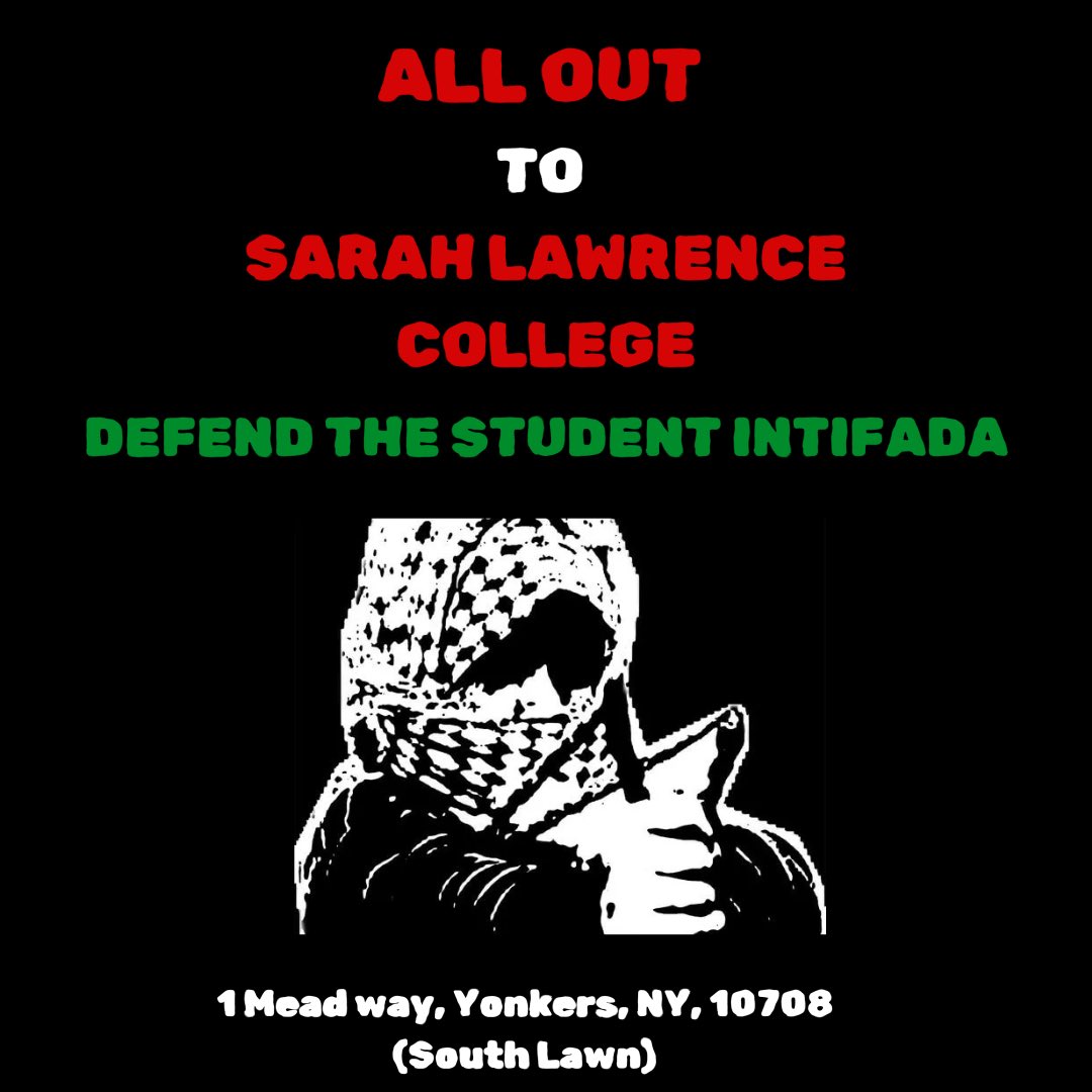 ALL OUT TO SARAH LAWRENCE COLLEGE! DEFEND THE STUDENT INTIFADA! For over 400 days our institutions have ignored the genocide of our people in Gaza, we DEMAND that they disclose their financial investments and they DIVEST FROM DEATH 🇵🇸 🇵🇸 Rally to Demand Disclosure, Divestment and an Arms Embargo