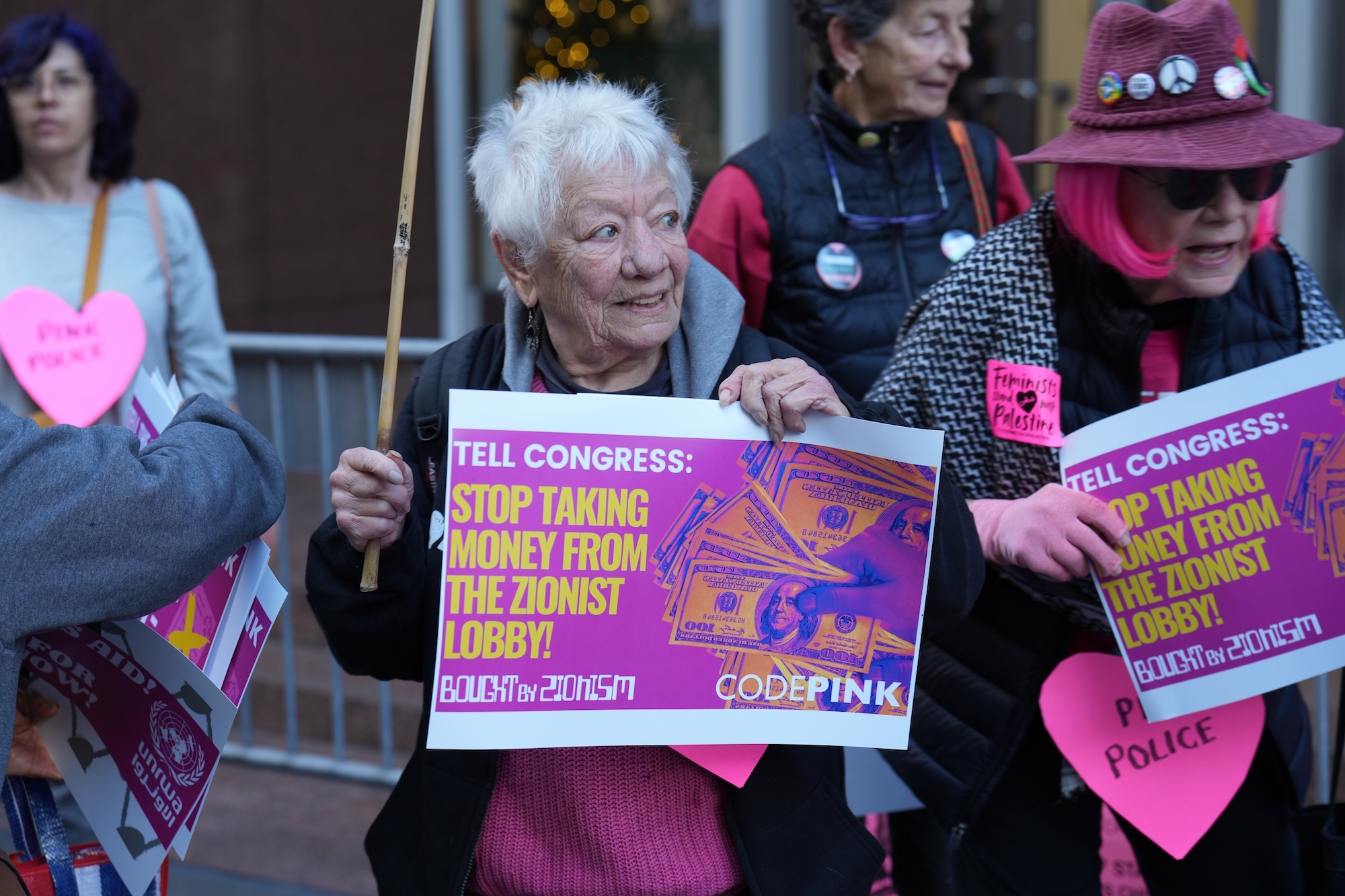 Leslie Angeline, an anti-war activist who is now in her 18th day of a hunger strike in solidarity with Gazans, admitted, while speaking to those in attendance, that while she was hungry, her pain was nothing compared with what people in Gaza face every day. She promised to endure her strike.