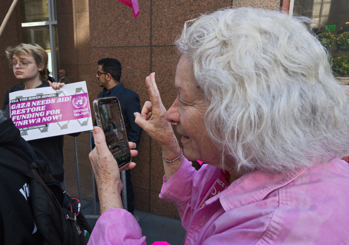 (San Francisco, Dec. 6) - As Amnesty International, one of the world's most respected human rights organizations, formally accuses Israel of perpetrating genocide, protesters called on California's Senator Alex Padilla to end his complicity in the ongoing US funded and armed Israeli genocide of Palestine. In spite of US law against aid to regimes violating human rights, the Senator has consistently voted for arms and funding to Israel.In the rally organized and led by San Francisco Code Pink's tireless organizer, Cynthia Papermaster, labor activist Steve Zeltser warned of the peril of Bill HR 9495 which would attack virtually every advocacy group in the country, including labor unions. It could label as terrorist and remove the tax-exempt status any organization that criticizes the Trump regime. This would mean the end of what there is of free speech in the US.