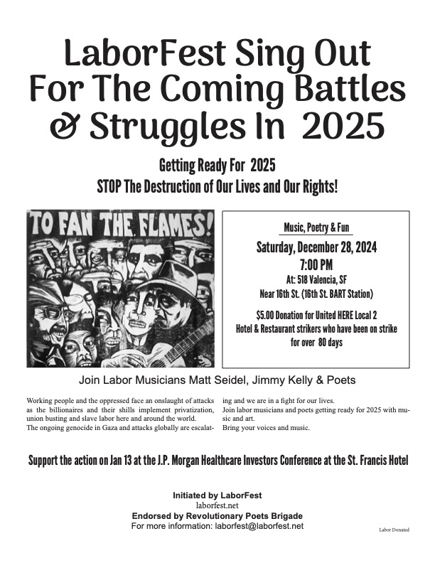 Join labor musicians and poets getting ready for 2025 with music and art.
