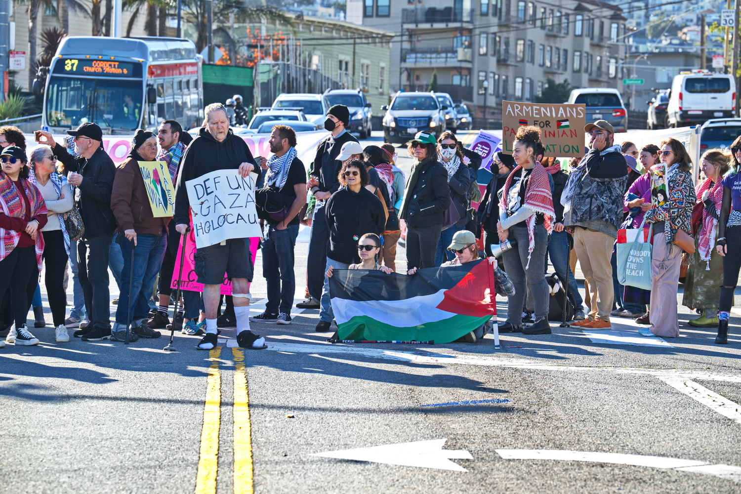 As 2025 begins and Israel's genocidal crimes against humanity continue and even intensify, protests in the Bay Area are finding new energy. The previous day saw a large protest in Union Square and on Jan 6 there will be a protest by medical workers at SF General Hospital.