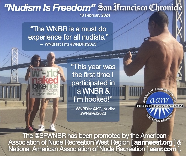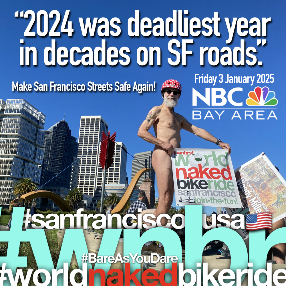 The Upcoming Calendar of Seasonal San Francisco World Naked Bike Rides presents the funnest opportunity to ProTest to Save Our Planet — in #ThePureSuitOfHappiness ( #BareAsYouDare ). As the San Francisco Chronicle “covered” us in 2024 & noted: “Nudism is Freedom!”