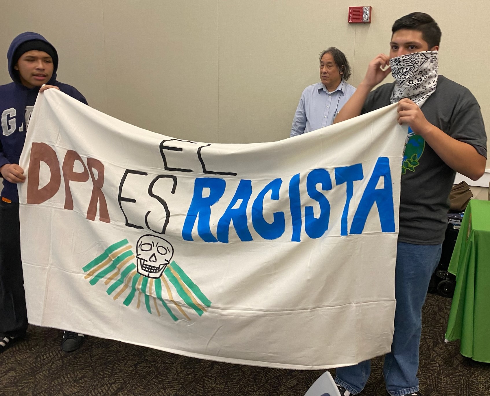 The Department of Pesticide Regulation (DPR) January 16 public hearing in Salinas on its draft regulation of cancer-causing 1,3-dichloropropene (1,3-D) was interrupted by more than a dozen protesters surrounding the podium in a mock “die-in”, while teenagers unfurled large bilingual banners saying “DPR is racist!” and the crowd of over 100 chanted “DPR, you can’t hide; we can see your racist side!”