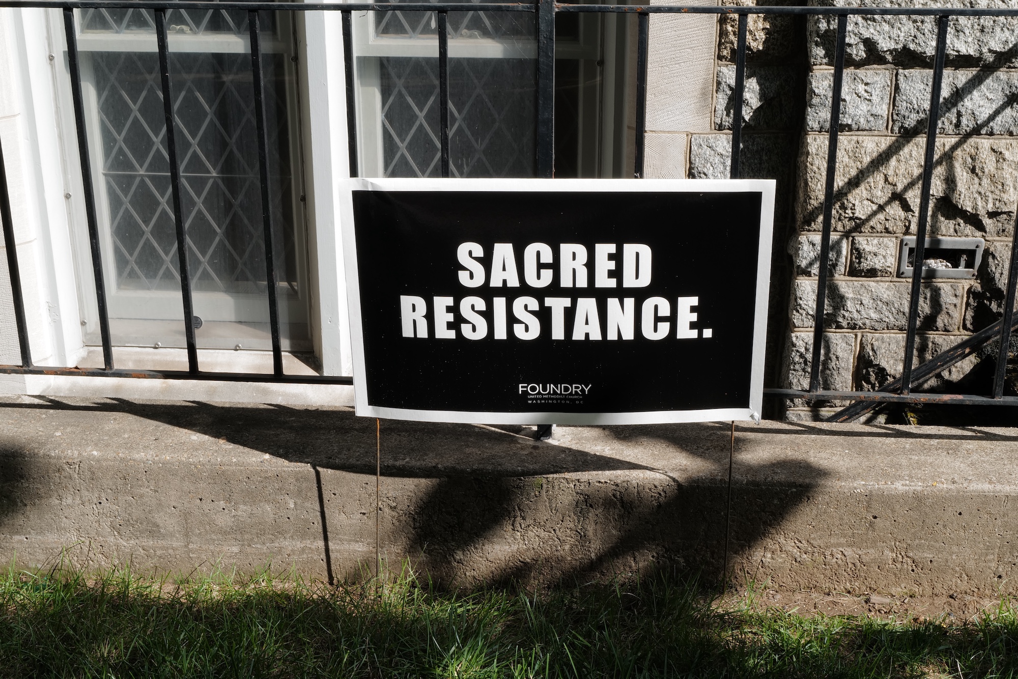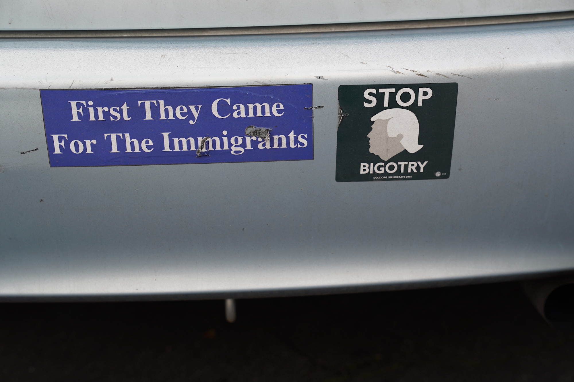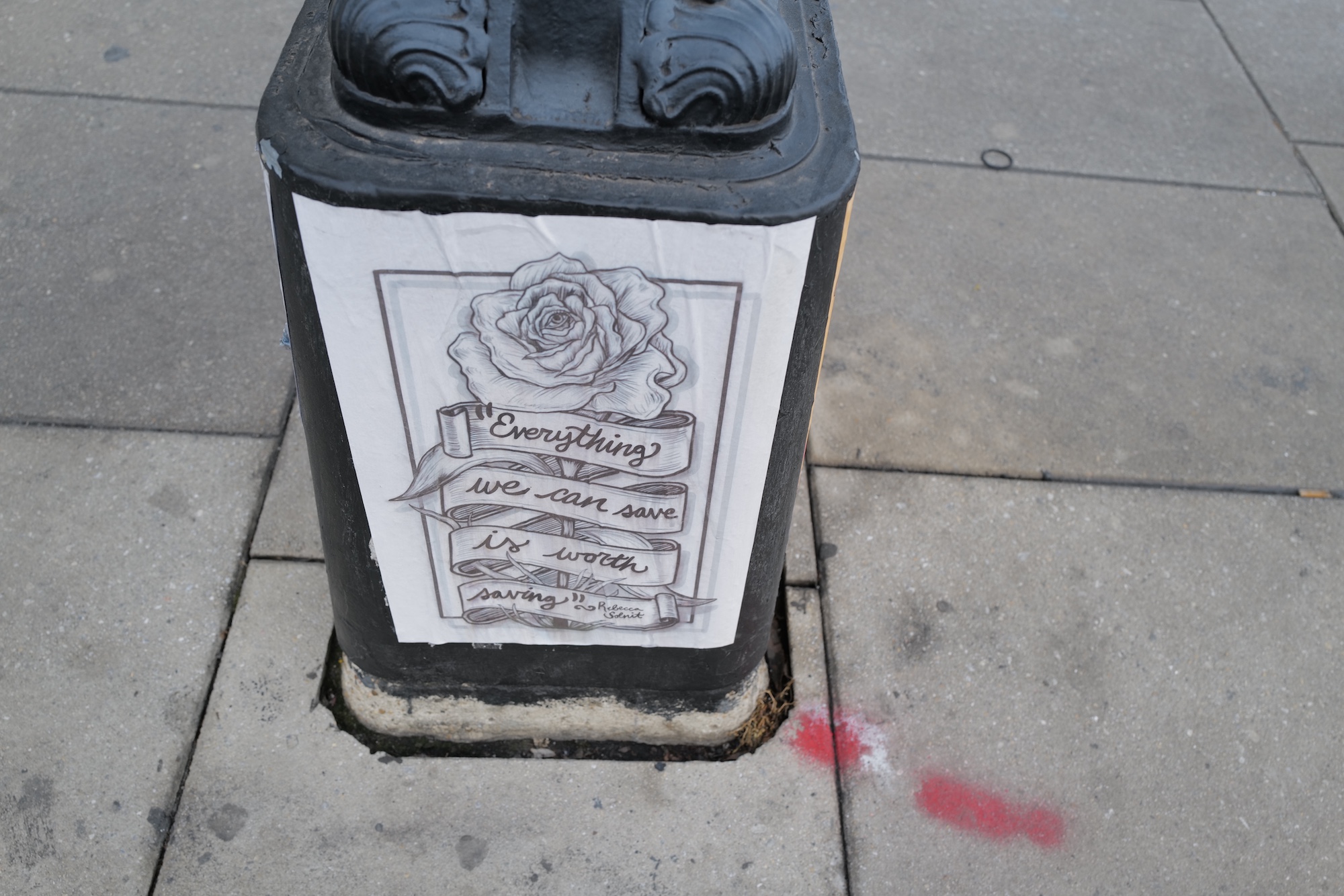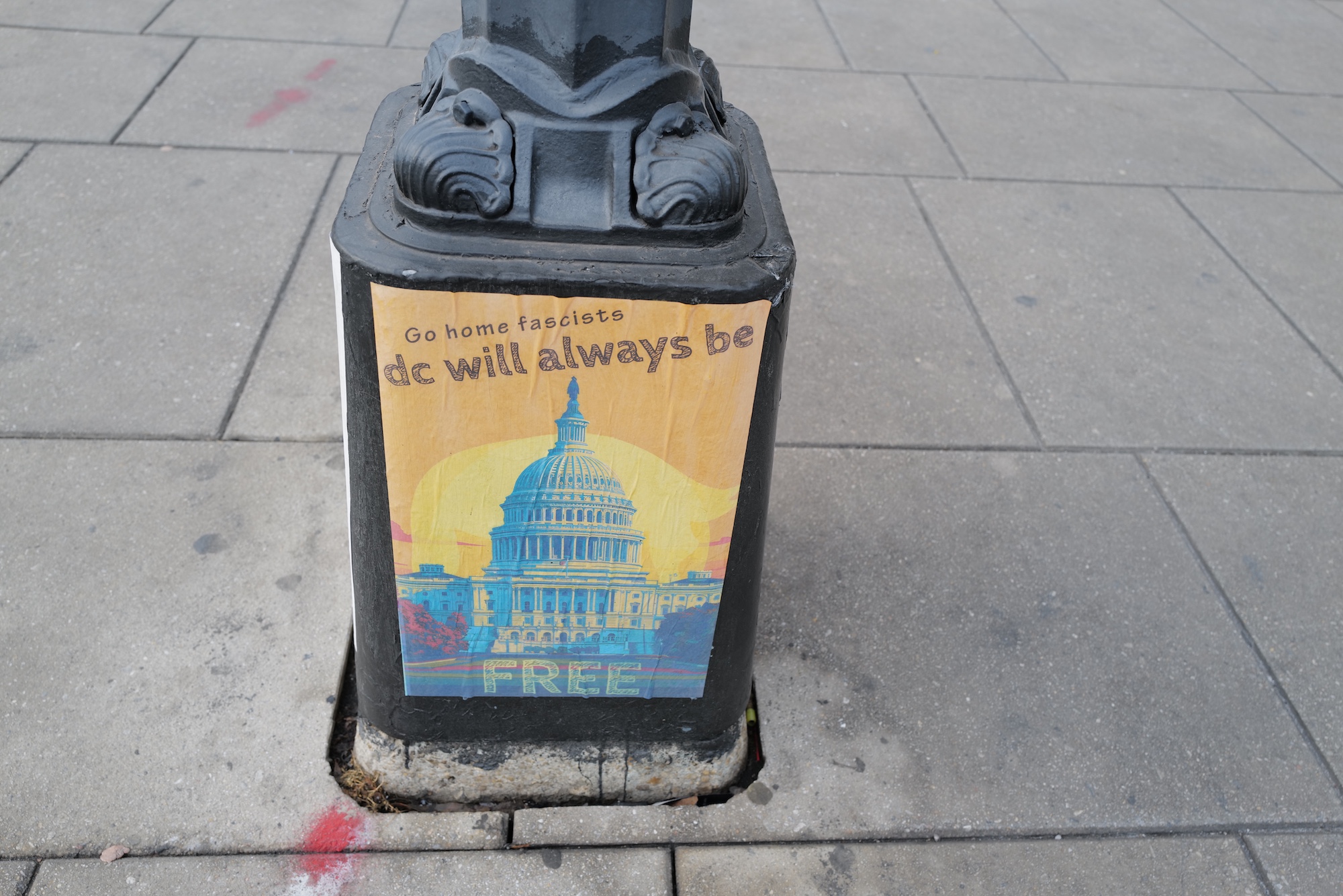 The death of our democracy and the disassembly of the constitution and the rule of law by the stroke of a pen, while making for great theater, will not stand without more resistance and challenges. Part of that growing resistance has seen people across the city placing signs, stickers and other forms of visual communication in public places expressing their feelings in resisting the direction Trump is attempting to lead the country.