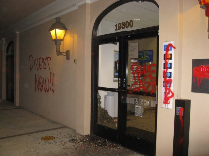 On the night of January 13th, a citibank in Cupertino, CA was vandalized. The bank was spray-painted with pro-Palestine messages, windows were broken, and jars of paint and oil were thrown inside. This action was taken following dozens of actions across the country targeting citibank for its role in funding and profiting from genocide in Gaza and ongoing colonial exploitation of Haiti. Citibank first built its riches through the exploitation of Haiti, funneling wealth from the newly independent nation and facilitating the 1915 american military invasion and occupation. Today, citibank continues to profit from war and colonial expansion. The firm is the largest american bank operating in "israel" and its investments fuel both the continued settler invasion of occupied Palestine and the zionist entity's genocidal assault of Gaza. We welcome the news of the ceasefire in Gaza as a victory of the Palestinian resistance and a respite for the people of Gaza who have been abandoned and betrayed by the world. But, the zionist project of ethnically cleansing all of Palestine continues, as does citibank's complicity. Until there is a free Palestine, we call for an ongoing escalation of targeted attacks against citibank and all other institutions within the imperial core which enable and profit from the zionist project. Long live the martyrs, glory to the resistance.