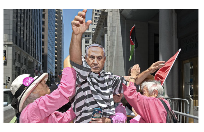 War Criminal Benjamin Netanyahu is NOT welcome in the U.S.! He belongs in prison, but Trump invited him to the White House and the Senate invited him to appear. Arrest him and stop funding weapons to Israel. Shut Guantanamo Prison now! Trump plans to imprison 30,000 immigrants at Guantanamo. We're gathering at Berkeley City Hall for street theater, street chalking, and making a ruckus about Netanyahu's visit to the U.S. We're sick of Congress using our tax dollars to fund a genocide in our names and to operate an illegal torture operation at Guantanamo. We need money for housing, health care, education, living wages, not more war, climate violence and nuclear weapons. Join the "Pink Police" to arrest Netanyahu and put him in prison. Special appearance by "Trump" and "Bibi".