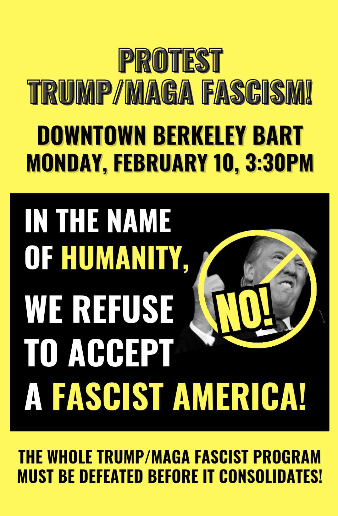 Monday, February 10, 3:30 PM in Downtown Berkeley— Join THE REVCOM CORPS For The Emancipation Of Humanity in saying: IN THE NAME OF HUMANITY, WE REFUSE TO ACCEPT A FASCIST AMERICA!