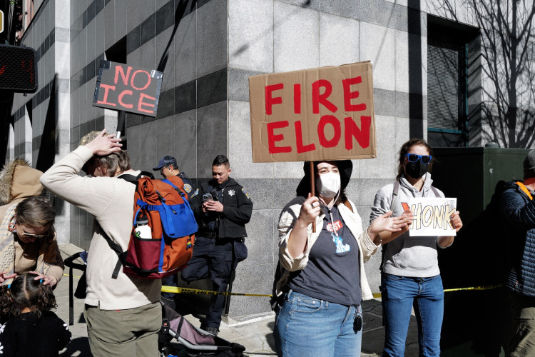SAN FRANSICO (02-08) – As part of the Global Day of Action to Stop Mass Deportations, activists demonstrated outside of the ICE (Immigration and Customs Enforcement) offices in downtown San Francisco to show solidarity with working class immigrants. Holding signs calling for an end to the mass round up and deportation of non-criminal undocumented immigrants along with the firing of Elon Musk, those present heard from speakers condemning the administration’s various tactics.