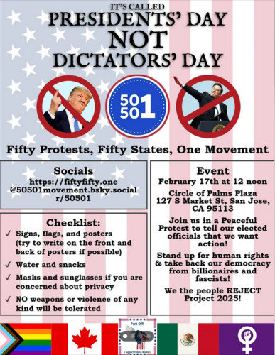 Join the San Jose 50501 protest on Presidents' Day.