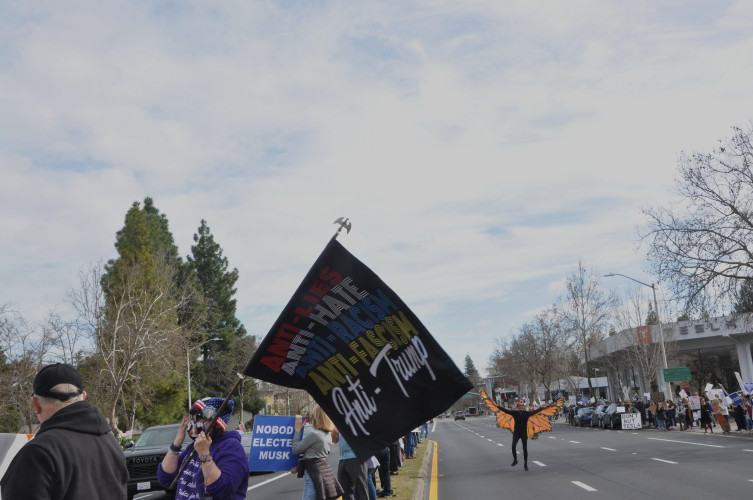 Overwhelming anger at Tesla was directed at Elon Musk's attempt to rule as if a king of the US, but other issues came up at a demonstration of 600 in front of the Tesla showroom in Palo Alto on February 16, as Tesla has a history of defying and breaking laws and regulations.
