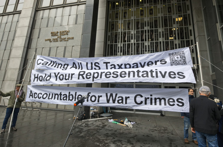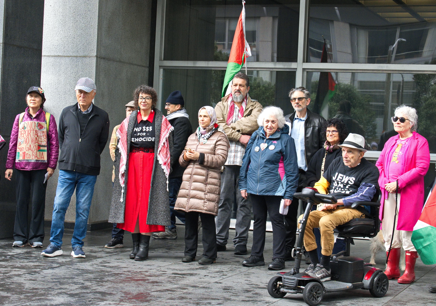 (San Francisco, Feb. 19) – Taxpayers Against Genocide (TAG) held an important press conference on February 19 at noon in front of the US Federal Court of Northern California (450 Golden Gate Ave., SF). Class representatives who joined the amended lawsuit last month read their important statements. TAG called out the failure of the Northern California Federal Court to deal with US complicity in genocide. The group also announced plans to file a report with the United Nations Human Rights Council in April and explore other international legal remedies.Taxpayers Against Genocide (TAG) is a fast-growing grassroots group of federal taxpayers who oppose being made complicit in genocide and oppose the illegal use of their taxes to fund military aid and weapons that facilitate genocide. The group began with 500 Northern California organizers and expanded to nearly 2000 in recent weeks. TAG is further expanding its membership to include all US federal taxpayers across the country as it seeks justice.