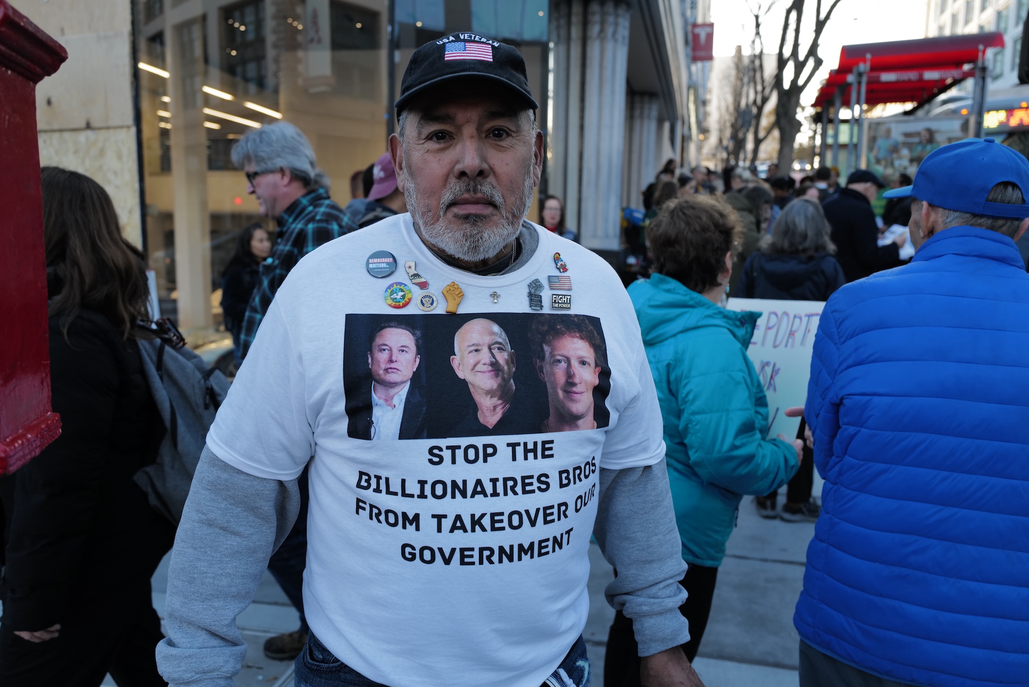 One speaker asked the crowd: “When was the last time you saw a forest fire being put out by a billionaire, or the last time you saw a billionaire answer a telephone.” While another suggested that a massive nationwide labor strike should be in the offing to shut things down to demonstrate the seriousness of the nonsensical massive firings.