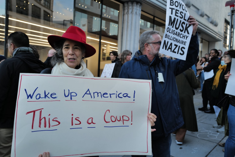 Federal employees along with ordinary citizens rallied and protested at the now-infamous Tesla showroom here on February 19 to express their solidarity to stop Elon Musk and his Department of Government Efficiency (DOGE) team from gutting federal services through mass layoffs. The nationwide call to action “SOS -Save Our Services day of action!” rallied in defiance to Elon and his minions by demanding that there are “NO cuts to vital services, NO mass layoffs: respect union workers’ contracts” and to “END the funding freeze.”