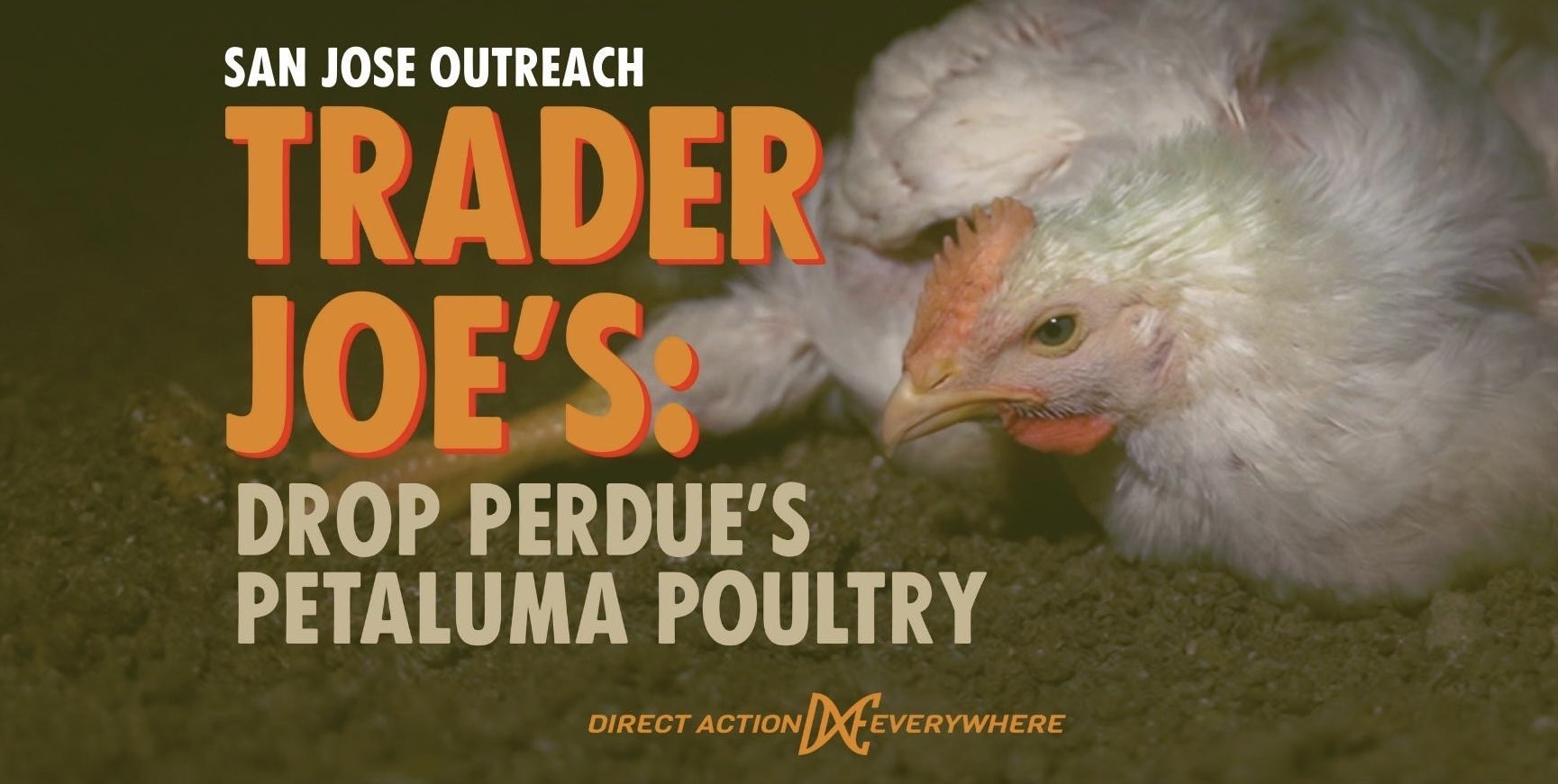 Trader Joe's continues to supply from Perdue's Petaluma Poultry despite being informed of the criminal animal cruelty occurring at its facilities. We've asked them to cut ties, but they remain complicit in supporting animal abuse. We will outreach to the public and will continue to request that Trader Joe's drops Petaluma Poultry as a supplier.