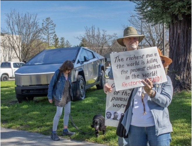 Feb 22 Santa Rosa protest against Musk at Tesla showroom